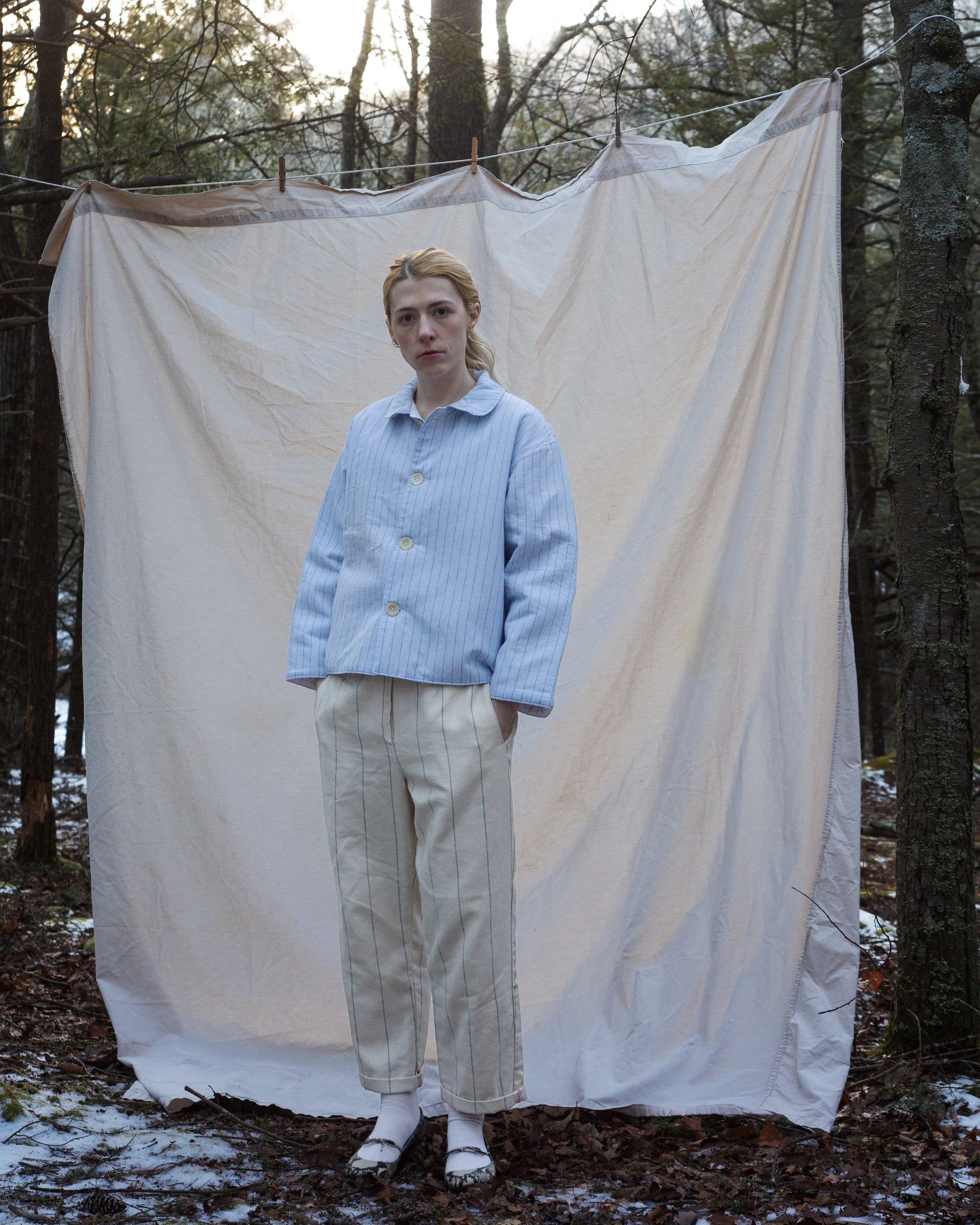 This sample sale is a collection of items made over the last year while working towards perfecting certain patterns. Every item is one of a kind and made by hand in Germantown, NY. Many of the pieces are made from antique and reclaimed fabrics. The clothing was photographed in my parents home, where my affinity for making and love of old objects was cultivated. Photos taken by Gus Aronson.